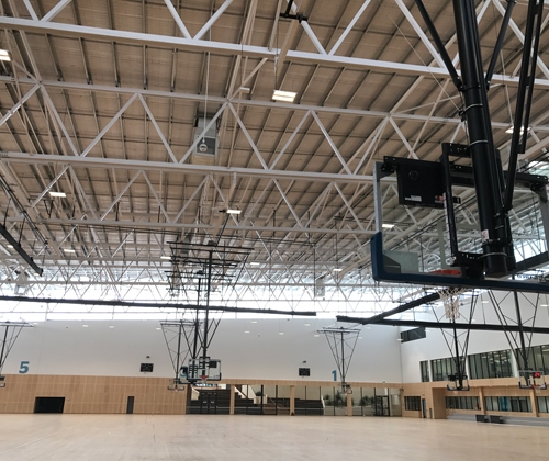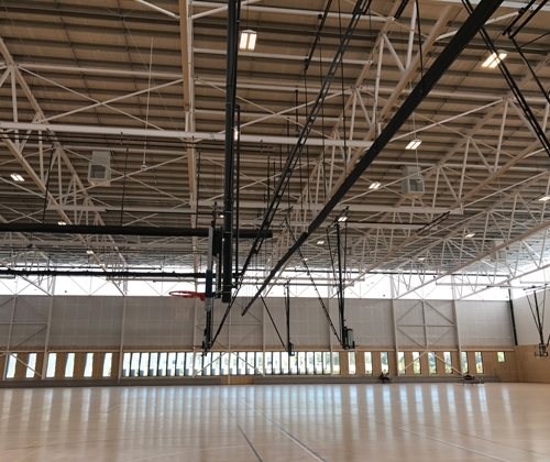 Stadia Roof-Mounted Indoor Basketball Backstop