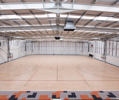 Indoor basketball systems with high-quality backboards, goals, and retractable roof or wall-mounted options — professionally installed to suit all levels of play.